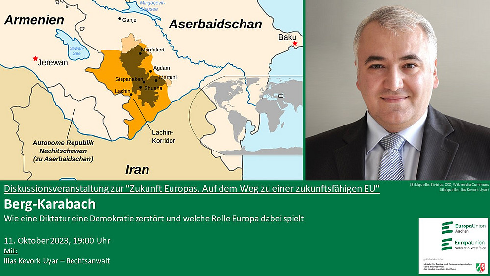 Nachdem die Bevölkerung von Arzach monatelang von Aserbaidschan ausgehungert wurde, griff die hochgerüstete aserbaidschanische Armee Berg-Karabach an, was dazu führte, dass die Armenier aus ihrem Heimatland vertrieben wurden. Welche Rolle spielt Europa in diesem Konflikt und welche Interessen haben die europäischen Staaten, aber auch andere Mächte wie Russland oder die Türkei? Der Referent wird auf die historischen Zusammenhänge und weitere Entwicklung dieses Konfliktes eingehen und über die aktuelle Lage der Zwangsvertriebenen eingehen.