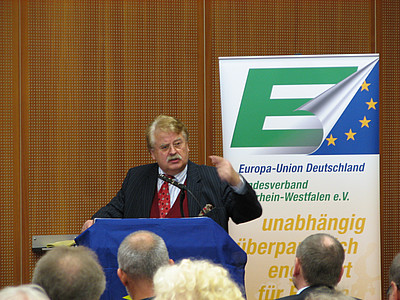 Auf die Probleme und Aussichten der Zukunft Europas bei einem möglichen Ausstieg von Staaten wie Griechenland oder Großbritannien, also einem „Grexit“ oder „Brexit“, gingen Prof. Dr. Ansgar Belke und Dr. Sigrid Fretlöh in der folgenden Diskussionsrunde ein, die von Prof. Dr. Wolfgang Wessels moderiert wurde.