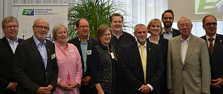 Vergangenen Samstag wählten die Delegierten der Landesversammlung der Europa-Union NRW einen neuen Vorstand (siehe Foto). Neben den Wahlen wurde auch inhaltlich intensiv gerarbeitet. So diskutierten die Delegierten aus dem gesamten Land Nordrhein-Westfalen die Grundlage für ihre Initiativen zu der im Mai 2019 stattfindenden Europawahl. Mit zahlreichen Aktionen „vor Ort“ wollen sie die Erfolgsgeschichte Europas nach außen tragen und dazu beitragen, dass die pro-europäischen Kräfte lauter und im Parlament wieder die Mehrheit stellen werden.