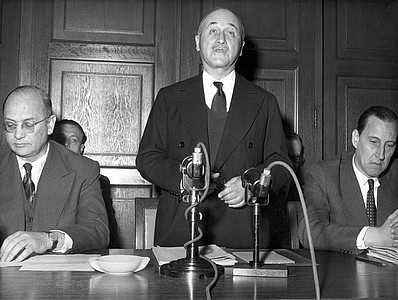 Jean Monnet (M) in seiner Funktion als Präsident der Hohen Behörde der EGKS bei einer Pressekonferenz am 10.01.1953. © European Union 2021 - Source : EP