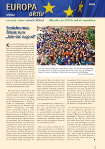In der neuen Ausgabe von Europa aktiv steht das Thema Jugend im Fokus. Zum Abschluss des Europäischen Jahres der Jugend ziehen wir Bilanz. Die neue Ausgabe berichtet zudem über den JEF-Bundeskongress, den Jugenddialog von JEF und EUD, und die beschlossene Absenkung des Wahlalters zur Europawahl auf 16 Jahre. Die Ausweitung des Wahlrechts auf junge Menschen ab 16 Jahren sei ein enormer Fortschritt für die Europäische Demokratie und biete eine große Chance für eine europapolitischen Bildungskampagne, analysiert Prof. Dr. Hermann Heußner…