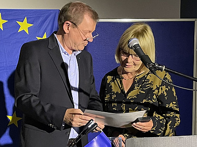 Die langjährige Leiterin des Europa-Direct Steinfurt erhielt jetzt aus den Händen des Europa-Abgeordneten Dr. Markus Pieper die Europa-Medaille der EVP-Fraktion im Europäischen Parlament.