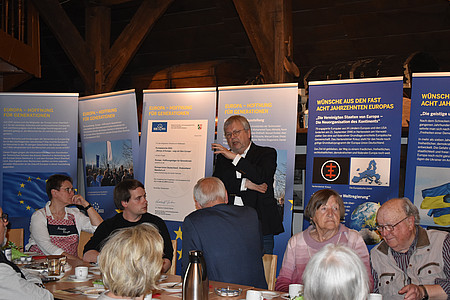 Wettringen. Prominent besetzt war das Treffen der Europa-Union Steinfurt am Europatag im Wettringer Heimathaus Ahlers. Bürgermeister Berthold Bültgerds, Ehrenbürger Engelbert Rauen und Heimatvereinsvorsitzender Werner Janning begrüßten die Mitglieder der Europa-Union zu der Ausstellung „Europa – Hoffnung für Generationen“, die dort seit dem Beginn der Europawoche ausgestellt war. Das Treffen der engagierten Europäer war zugleich der Start einer Reihe von neuen Begegnungen, die das gemütliche Beisammensein an interessanten Orten mit…