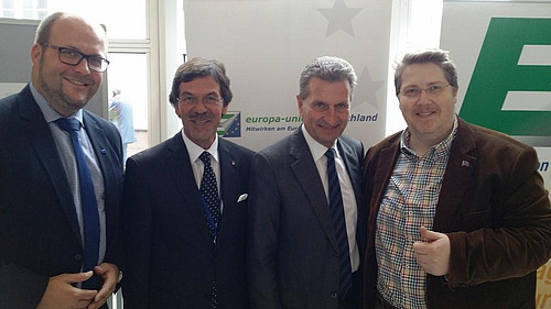 Viel Prominenz fand sich am Infostand der Europa-Union Deutschland beim Jahrestreffen der Deutschen Sektion des Rates der Gemeinden und Regionen Europas in Ettlingen ein. Am 5. und 6. Oktober präsentierten Präsidiumsmitglied Heinz Schaumann und Vertreterinnen des örtlichen Kreisvorstandes den Delegierten Aktivitäten und Projekte der Europa-Union.